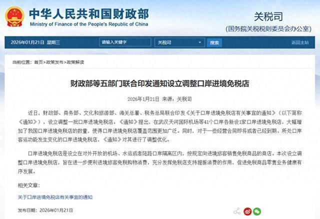 近日,财政部、商务部、文化和旅游部、海关总署、税务总局联合印发《关于口岸进境免税店有关事宜的通知》(以下简称《通知》),设立调整一批口岸进境免税店。《通知》提出,在武汉天河国际机场等41个口岸各新设1家口岸进境免税店,大幅增加了我国口岸进境免税店的数量,使得口岸进境免税店覆盖范围更加广泛。同时千汇网,对于一些经营合同即将或者已经到期、所处口岸客运功能发生变化的口岸进境免税店,《通知》对其进行了调整优化。